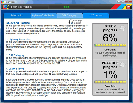 • Theory TestOne to work hand-in-hand with the early stages of your in-car driving course.
