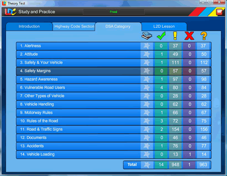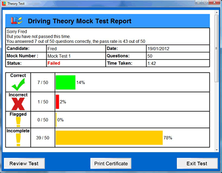 • Theory Test14 properly balanced pre-set simulated Theory Tests based on our extensive experience (as one of the largest national driving schools in the UK) of the most commonly occurring test questions all under realistic exam conditions.